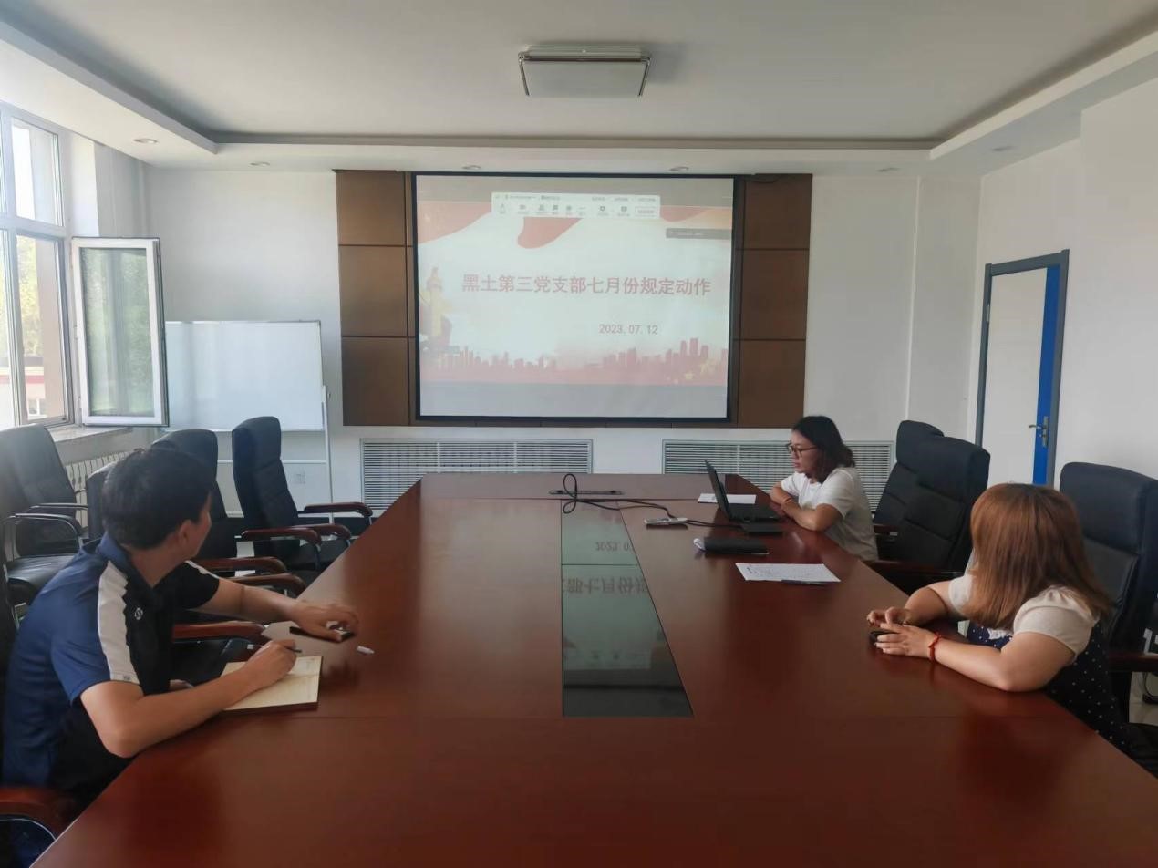 7月12日,黑土第三黨支部以集中觀看“七一”專題黨課為主要內(nèi)容開展主題黨日活動,活動由支部書記鄒文秀主持。
